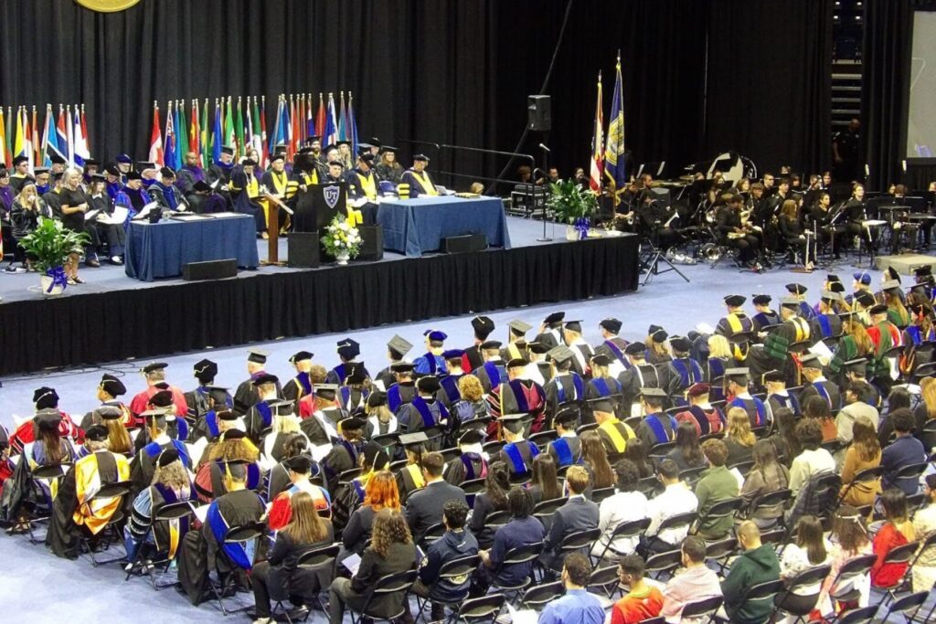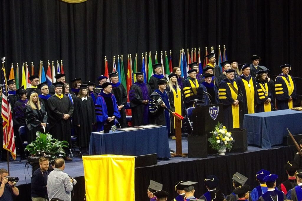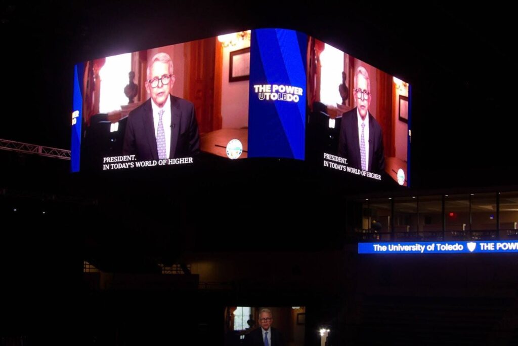 The procession began with the entrance of distinguished individuals and student representatives in the Parade of Flags. Songs were performed by members of University Wind Ensemble, UToledo Chamber Singers and singer Sarah Porter. Opening remarks were given by members of the Board of Trustees, Student Government, the Alumni Association, Faculty Senate, as well as recorded speeches from Gov. Mike DeWine and Rep. Marcy Kaptur. There were also videos played on screen, made by multiple university departments welcoming the new president.