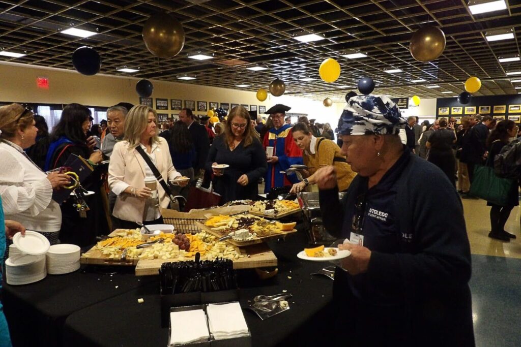 At the conclusion of his speech, guests were given small medallions upon exit to commemorate the event, and a neatly decorated reception with many food and drink options followed.